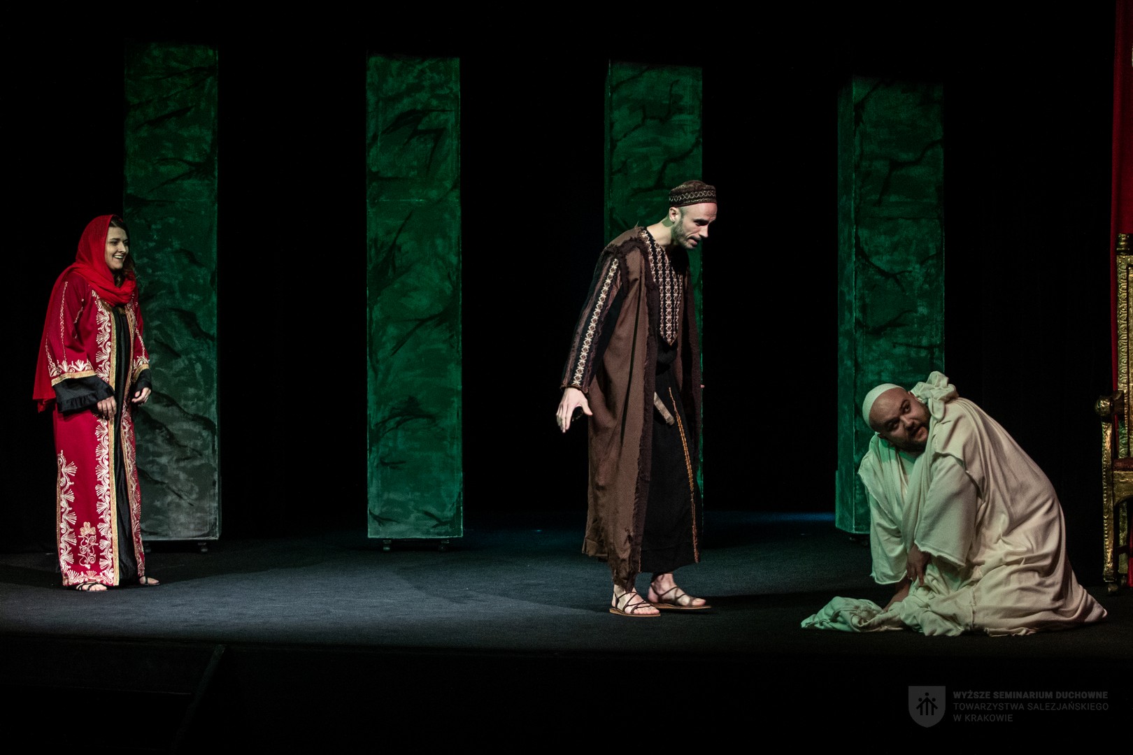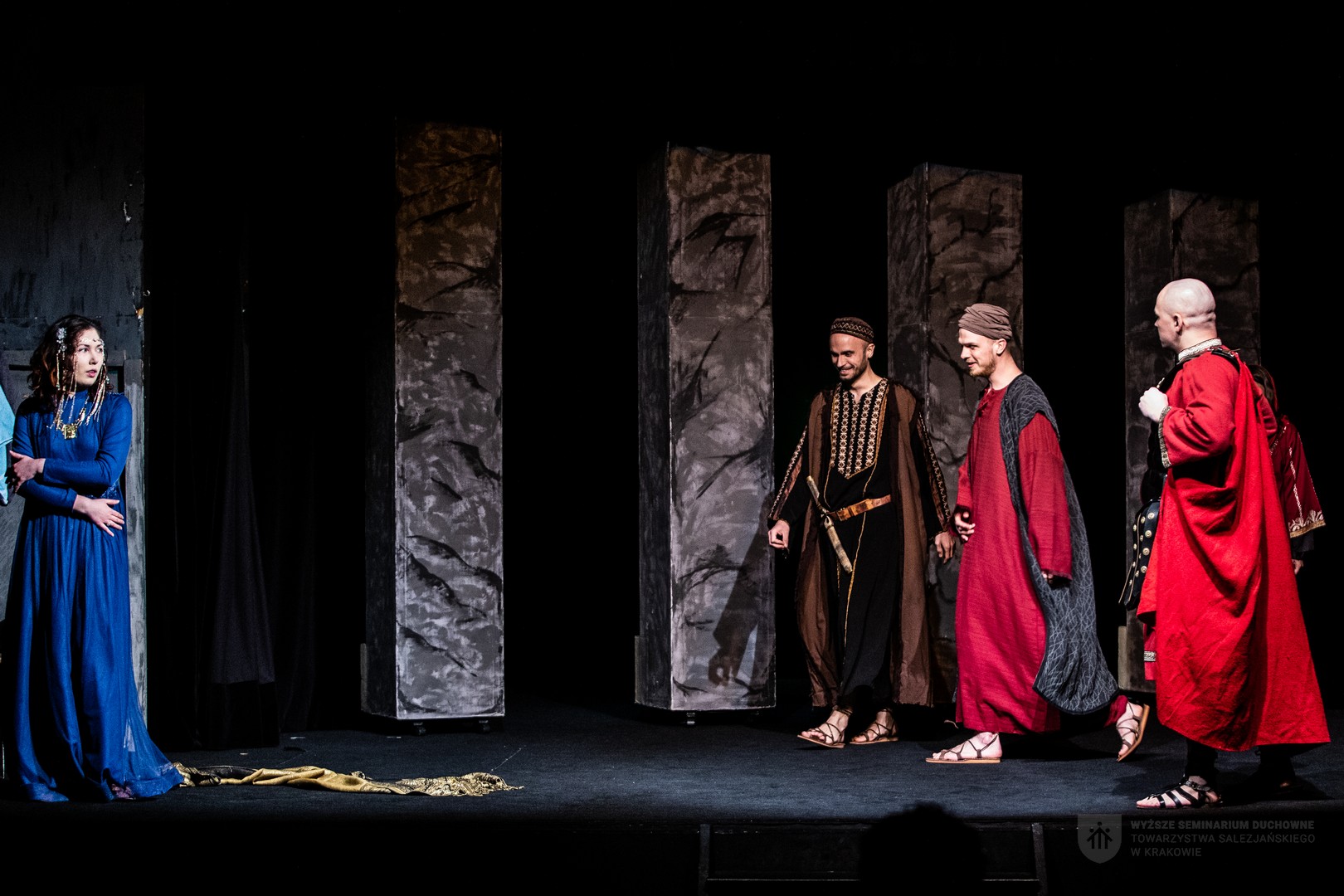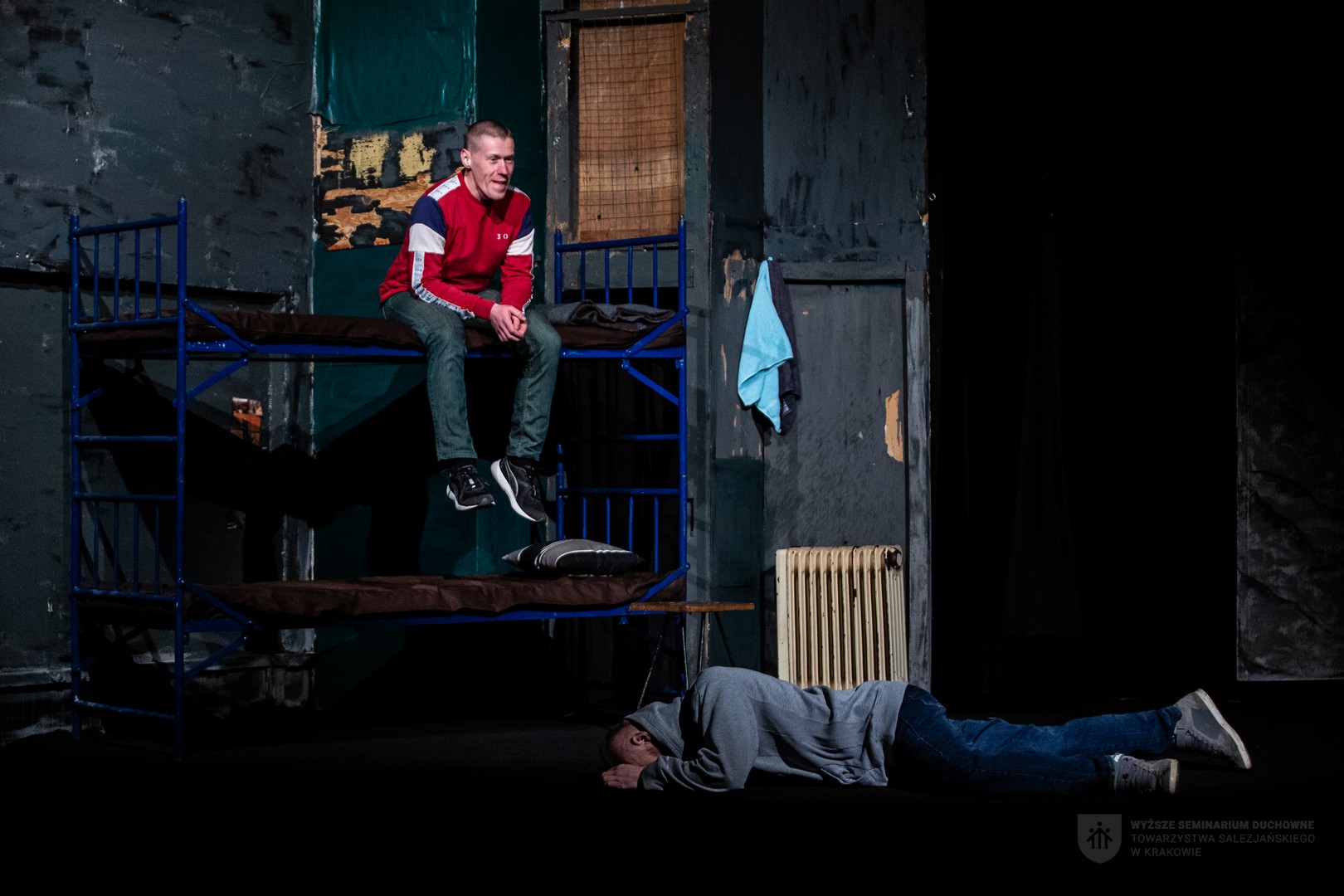 Z utęsknieniem czekałam, by w sobotę, 1.04.br. wraz ze starszymi mariankami móc pojechać do Krakowa i zobaczyć kolejne już salezjańskie Misterium w reżyserii Marcina Kobierskiego oraz w wykonaniu salezjańskich kleryków i wspólnoty Ziemi Boga. To niezwykłe Misterium jest dla mnie ogromną łaską, takim świętym czasem rekolekcji. Reżyser podchodzi do tematu Męki Pańskiej w zupełnie niekonwencjonalny sposób. W tym roku posłużył się historią życia Grzegorza Czerwickiego, która zderza się z Męką Chrystusa i z dobrym łotrem. Do stworzenia scenariusza Misterium posłużyła udostępniona przez autora historia życia opisana w książce "Nie jesteś skazany". Grzegorz przez dobrych kilka lat siedział w więzieniu, miał totalnie rozwalone życie i raczej był daleko od Boga, dopóki Bóg nie zainterweniował i Jezus stał się jego najlepszym Przyjacielem. Lustrzanym odbiciem dla Grześka jest postać Dyzmy, dobrego łotra. Odczytuję to jako kolejną szansę na nawrócenie. Ciekawa jest scena, kiedy Dyzma spotyka Judasza i dopytuje go o przypowieść o zagubionej owcy, bo właściwie obydwoje byli takimi zagubionymi owcami. Niestety, Judasz nie pojmuje, że „w niebie większa będzie radość z jednego grzesznika, który się nawraca, niż z dziewięćdziesięciu dziewięciu sprawiedliwych, którzy nie potrzebują nawrócenia”. Każda ze scen wiele wnosi w moje życie. Interesująca jest postać żony Piotra, która zmaga się z odejściem Szymona Piotra, gdy inni szemrzą, że jest opuszczona, widzimy też jej reakcje na uzdrowienie matki… Rewelacyjnie jest pokazany sen Klaudii o Jezusie, jej relacje z Piłatem i wzajemne cytowanie sobie Seneki.