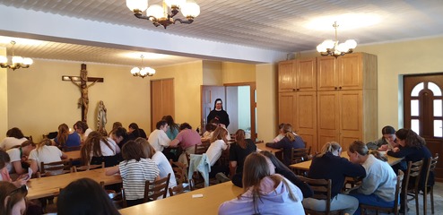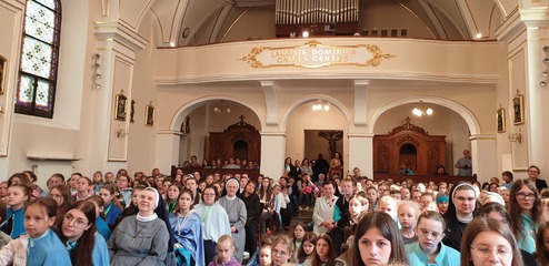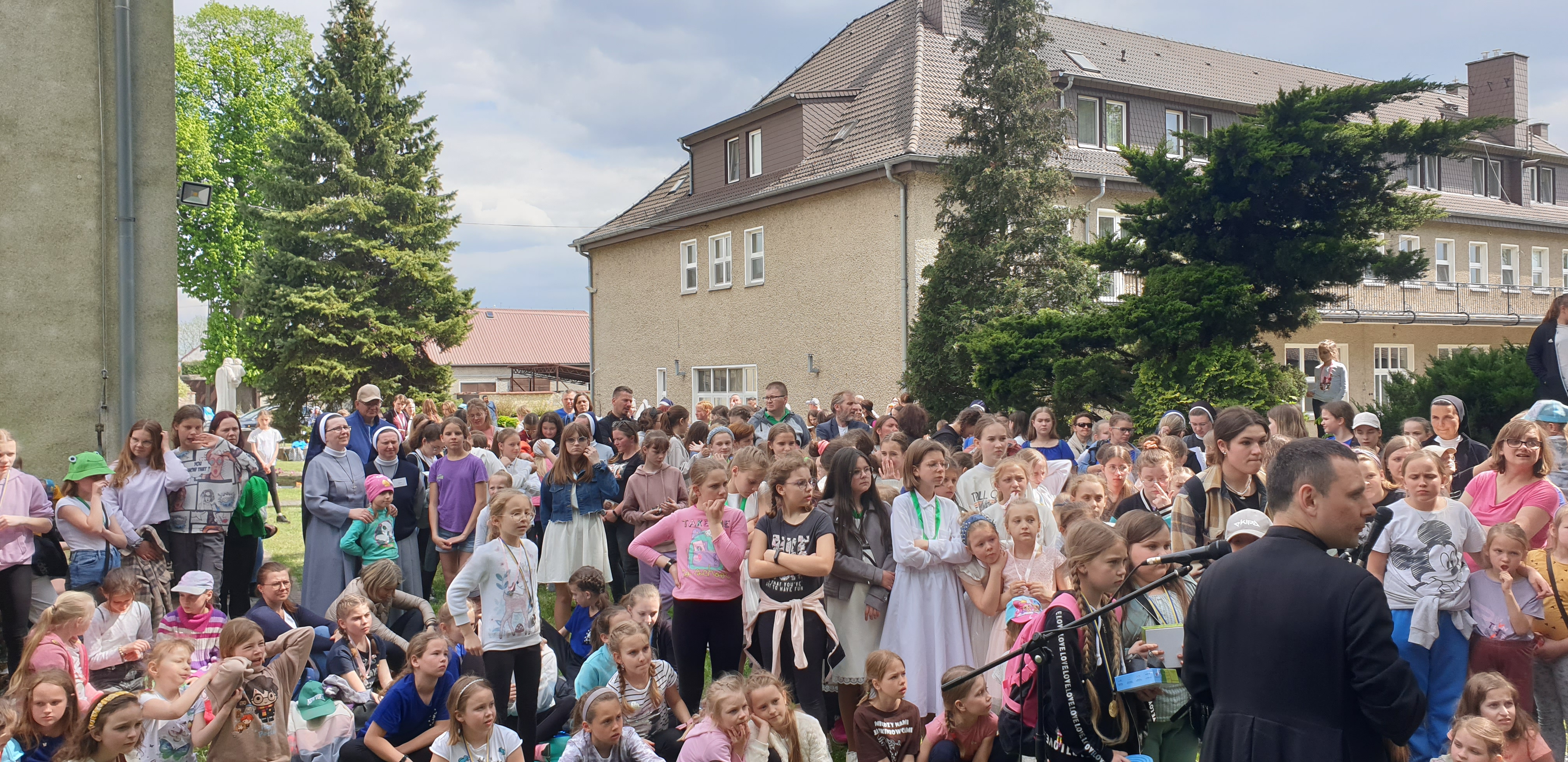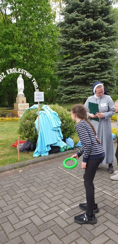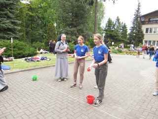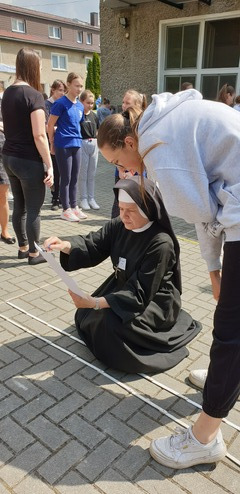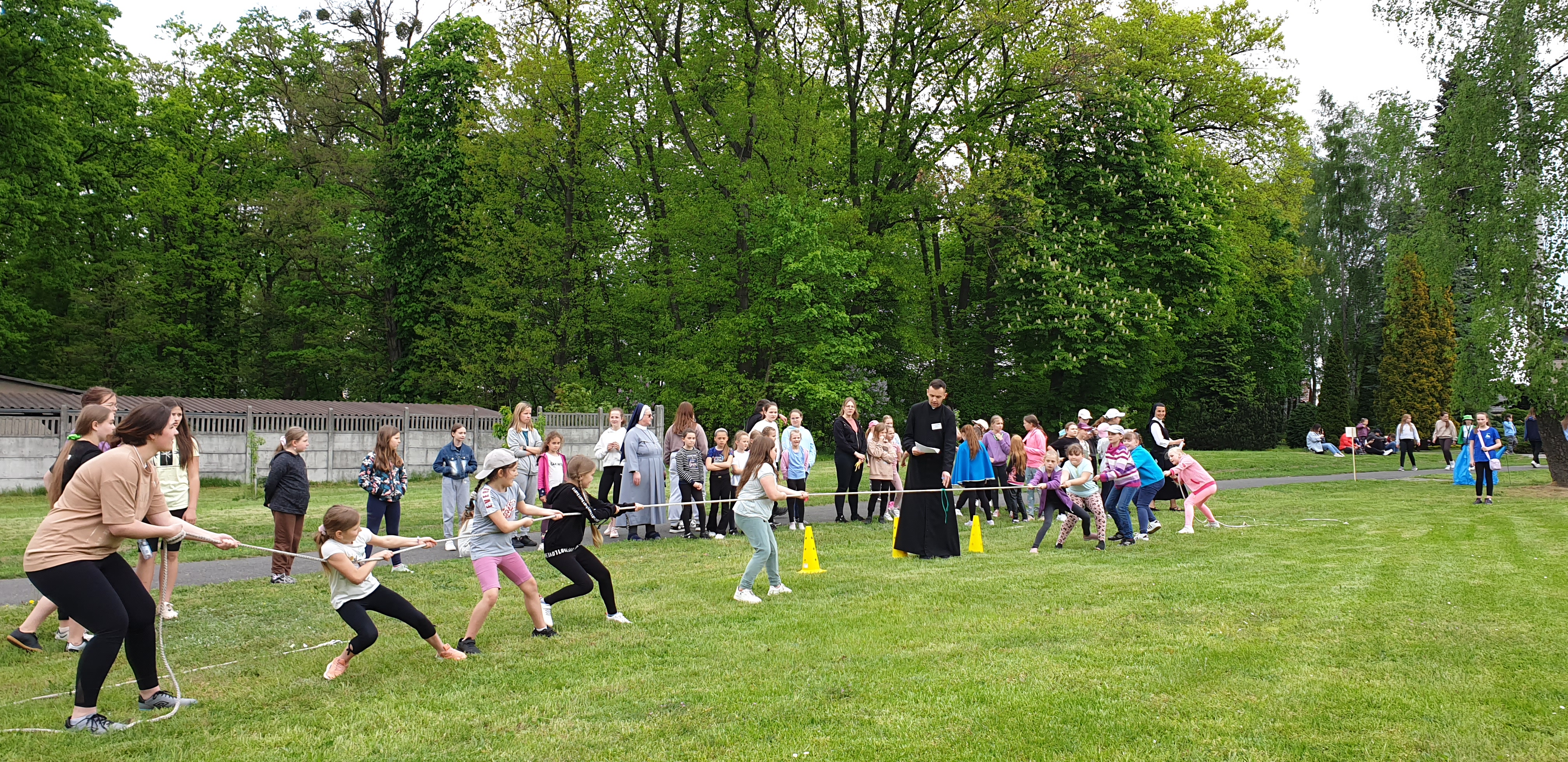 13 maja 2023r. spotkały się Marianki z 34 parafii naszej opolskiej diecezji, by zmierzyć się o Puchar w Turnieju Maryjnym. Już z samego rana rejestrowały się przed Betanią w klasztorze Sióstr Służebniczek NMP poszczególne drużyny i o 9.00 około 350 osób uczestniczyło we Mszy Św. sprawowanej przez 6 kapłanów pod przewodnictwem diecezjalnego opiekuna Dzieci Maryi, ks. Łukasza Szustera. Przy ołtarzu usługiwał też ks. diakon Daniel. Ks. Mateusz Kozielski w czasie kazania dodał wszystkim entuzjazmu, gdy każdej grupie wręczył wirtualnie pierwszego puchara za odwagę przybycia i świadectwo uczestnictwa we Mszy Św. Podkreślił, że nie jest to bez znaczenia, że akurat w dzień fatimski się jednoczymy i rozpracował znaczenie słowa Matka (M – miłość, A – adoracja, T – troska, K – krzyż i A – amen). Po Mszy Św., rozpoczęły się konkursy wiedzy, piosenki maryjnej i z 5 dyscyplin sportowych. Dzięki bardzo operatywnym sędziom, wszystko sprawnie się toczyło. Po ciepłym posiłku sponsorowanym przez Siostry Służebniczki i ochładzających nas lodach, Turniej został sfinalizowany ogłoszeniem wyników. 1 miejsce z dziedziny wiedzy uzyskała drużyna z Jasionej, Kotorza i Żywocic; z konkursu pieśni: Brożec i Dziewkowice, ze sportu: złoty medal dziewczyny z Kietrza, srebrny - Góra Św. Anny i Luboszyce, brązowy – Leśnica. Puchar (czyli najwięcej punktów z wszystkich dziedzin) osiągnęły Marianki z Góry Św. Anny, II miejsce – Jasiona, a III – 4 drużyny :Brożec, Dziewkowice, Kietrz i Leśnica. Pozostali otrzymali dyplomy wyróżnienia i pamiątkowe nagrody. Dziewczyny poprzez udział w tym Turnieju dały swoje świadectwo bez słów, że są Mariankami, a Maryja ich najlepszą Matką. Nad całością czuwał opiekun diecezjalny - ks. Łukasz Szuster. Księże Łukaszu jesteś nie do zdarcia!!! Panu Bogu niech będzie cześć i chwała za wspaniałą pogodę i Bożą Opatrzność nad nami.